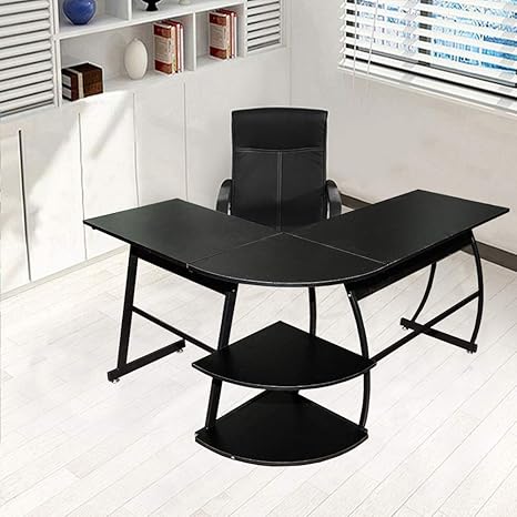Black L Shaped Workstation Computer Desk Home Office Corner